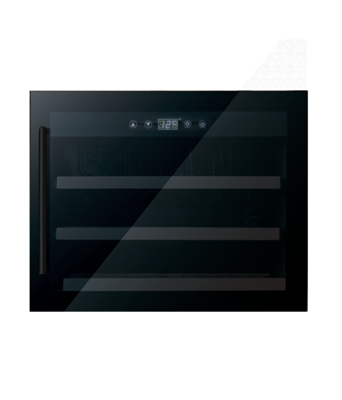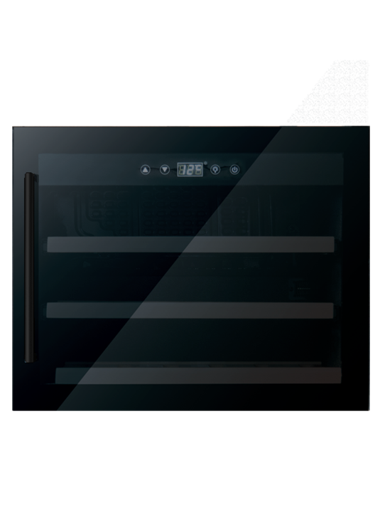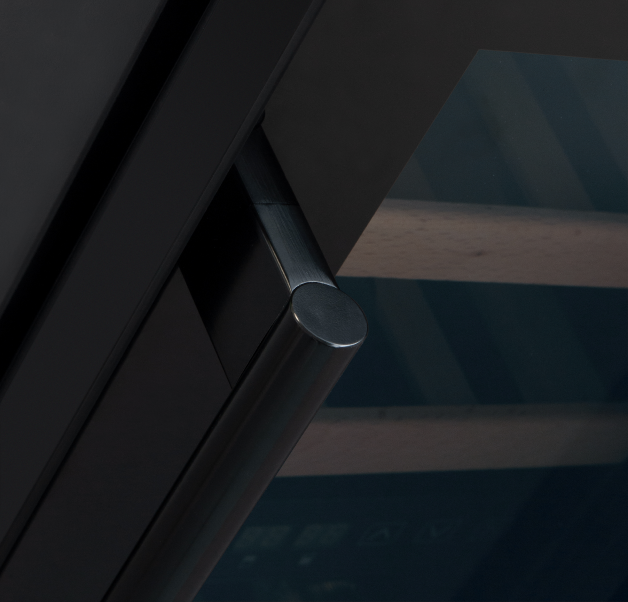 Szklane drzwi w kolorze czarnym dodają winiarce elegancji, a jednocześnie umożliwiają podziwianie zawartości. Wysokość szklanego frontu sprawia, że winiarka świetnie komponuje się w zabudowie kuchennej.