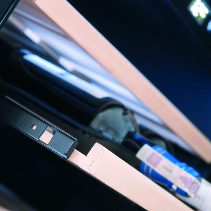 Prowadnice teleskopowe w winiarce BRGSW18 zapewniają płynne i ciche wysuwanie nawet w pełni załadowanych półek, umożliwiając wygodny dostęp do każdej butelki bez konieczności schylania się lub niepotrzebnego manipulowania pozostałym winem. Dzięki 2 półkom zamontowanym na tym systemie, użytkownik zyskuje nie tylko ergonomię, ale także pełną kontrolę nad kolekcją, łatwo organizując butelki i utrzymując porządek. To połączenie funkcjonalności i elegancji sprawia, że przechowywanie wina staje się intuicyjne i satysfakcjonujące, a drewniane półki dodatkowo podkreślają naturalny charakter przechowywanych trunków.