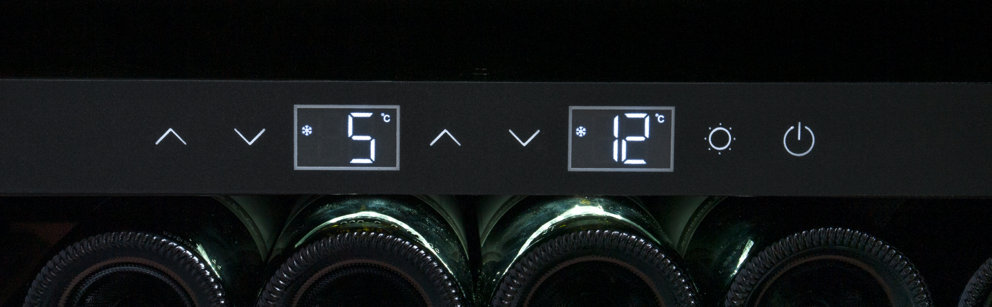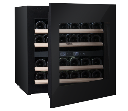 Dwuwarstwowe szklane drzwi z filtrem UV w kolorze czarnym dodają winiarce elegancji, a jednocześnie umożliwiają podziwianie zawartości. Wysokość szklanego frontu sprawia, że winiarka świetnie komponuje się w zabudowie kuchennej.