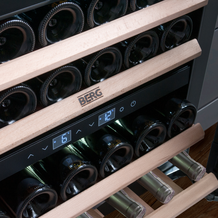 Dwie niezależne strefy temperatury w winiarce to rewolucja w przechowywaniu win, która pozwala jednocześnie chłodzić lekkie białe wina w jednej strefie do 7°C oraz dojrzewać czerwonym winom w drygiej strefie w temperaturze 16°C.