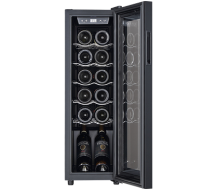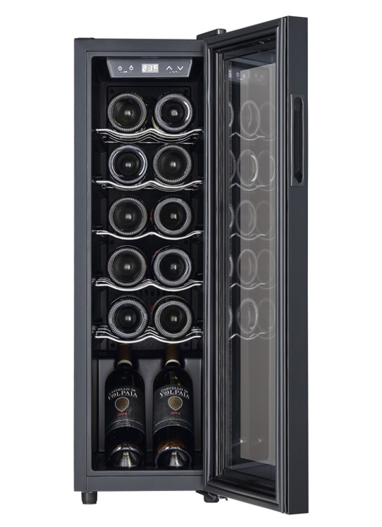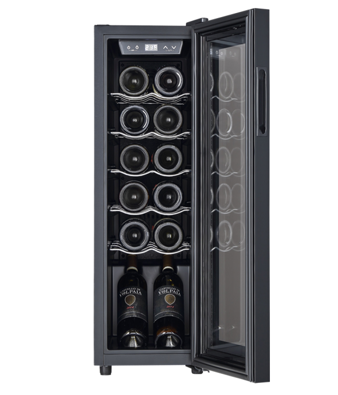 Dwuwarstwowe szklane drzwi z filtrem UV w kolorze czarnym dodają winiarce elegancji, a jednocześnie umożliwiają podziwianie zawartości, tworząc efektowną wizytówkę Twojej kolekcji, która zachwyci każdego gościa.
