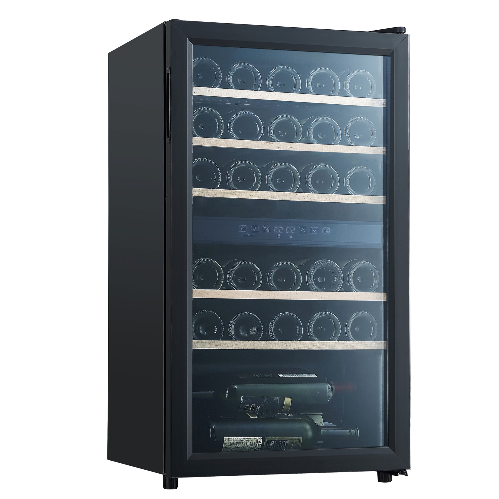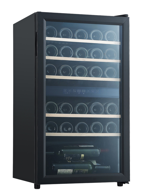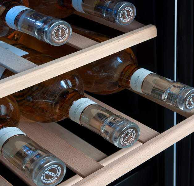 Dwuwarstwowe szklane drzwi z filtrem UV w kolorze czarnym dodają winiarce elegancji, a jednocześnie umożliwiają podziwianie zawartości, tworząc efektowną wizytówkę Twojej kolekcji, która zachwyci każdego gościa.