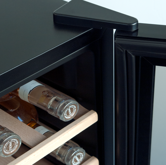 Winiarki BERG łączą innowacyjne rozwiązania z dopracowanym designem. Jednym z nich jest zintegrowany uchwyt który zapewnia minmalistyczny wygląd, łatwe otwieranie, brak ostrych krawędzi oraz trwałość.