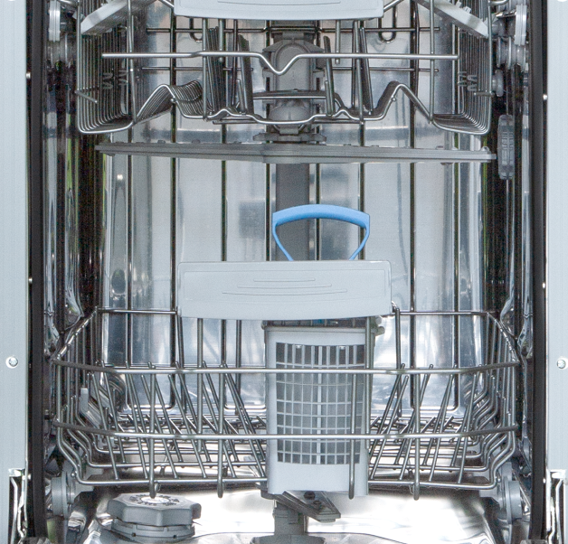 System filtracji składa się z trzech etapów: filtr wstępny zatrzymuje większe resztki jedzenia, filtr mikrofiltracyjny usuwa mniejsze cząstki, a filtr wirujący (ceramiczny) wychwytuje drobne zanieczyszczenia, zapewniając czystość wody. Dzięki temu woda wykorzystywana do mycia jest zawsze czysta, co przekłada się na nieskazitelne efekty mycia i doskonałą kondycję Twojej zmywarki.