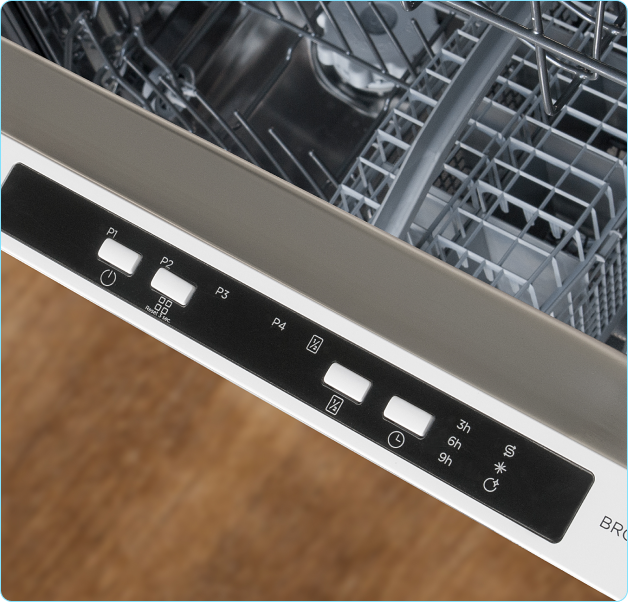 Zintegrowany panel sterowania, ukryty na górnej krawędzi drzwi, zapewnia minimalistyczny design, oraz intuicyjny dostęp do wszystkich programów i funkcji, tworząc spójną i nowoczesną linię frontu mebli kuchennych.