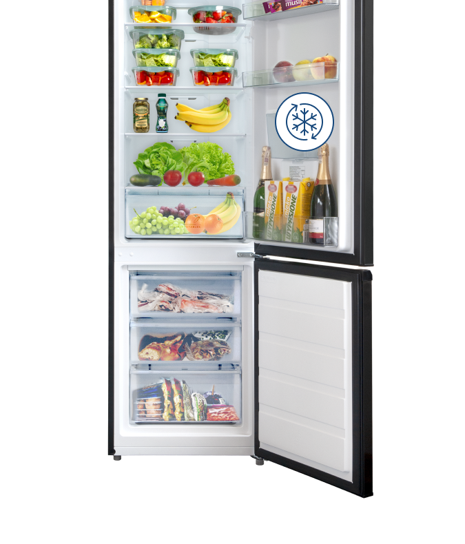 Warzywa i owoce zachowują swoją świeżość najdłużej, gdy przechowywane są w odpowiednich warunkach. Im niższa temperatura i wyższa wilgotność, tym lepiej dla ich trwałości. Chłodziarko-zamrażarka BERG CZW180NBM22 wyposażona jest w funkcję Multi Air Flow, która zapewnia równomierne rozprowadzenie chłodnego powietrza w całym wnętrzu, dzięki dwóm obiegom powietrza. Dodatkowo, urządzenie oferuje specjalną strefę przechowywania zwaną komorą świeżości, w których temperatura jest zbliżona do zera stopni Celsjusza, co idealnie sprzyja przechowywaniu warzyw i owoców, zachowując ich świeżość na dłużej.
