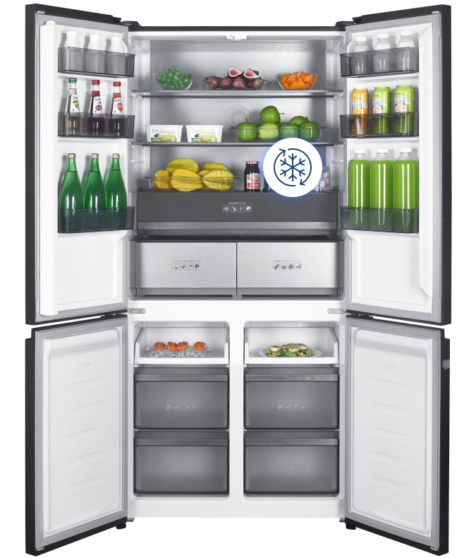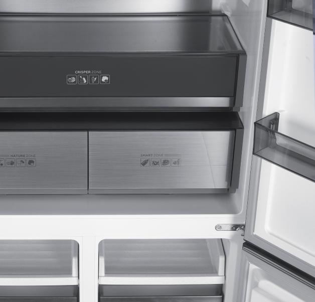 Rewolucyjna technologia 4 inteligentnych stref chłodzenia precyzyjnie odtwarza optymalne warunki przechowywania dla różnych grup produktów, od świeżych warzyw po delikatne ryby i mięso. Dzięki indywidualnej kontroli temperatury i wilgotności w każdej strefie zapewnia maksymalną świeżość żywności nawet do 2 razy dłużej w porównaniu do tradycyjnych rozwiązań.