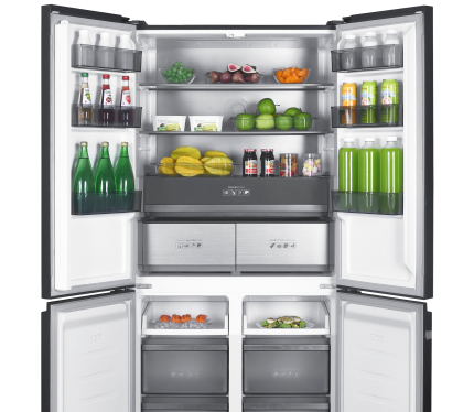 Chłodziarka Multidoor o pojemności 502 litry to idealne rozwiązanie dla dużych rodzin i miłośników zakupów na zapas. Dzięki inteligentnemu rozkładowi półek i szuflad zapewnia wygodne przechowywanie różnorodnych artykułów spożywczych, od dużych opakowań po delikatne owoce i warzywa, zachowując przy tym doskonałą organizację przestrzeni.