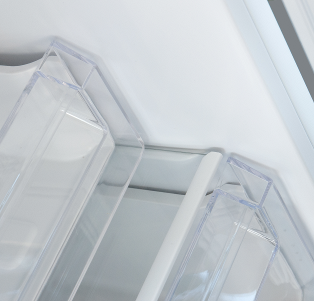 Półki w drzwiach wykonane są z wysokiej jakości przezroczystego tworzywa, które jest wyjątkowo odporne na zarysowania, działanie chemikaliów i temperatury. Półki drzwiowe można myć w zmywarce do naczyń (do temperatury 55 °C) po zdjęciu listew ozdobnych. Dzięki temu nie jest już konieczne ręczne przecieranie półek.