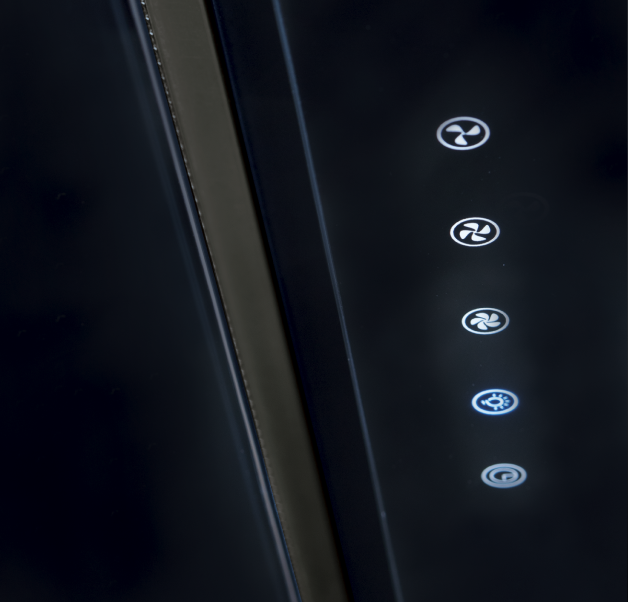 Sterowanie dotykowe z niebieskim podświetleniem to eleganckie i nowoczesne rozwiązanie, które ułatwia obsługę okapu, zapewniając intuicyjne kontrolowanie jego funkcji nawet w ciemności. Intensywne podświetlenie dodaje stylowego akcentu, jednocześnie zwiększając widoczność panelu sterowania.