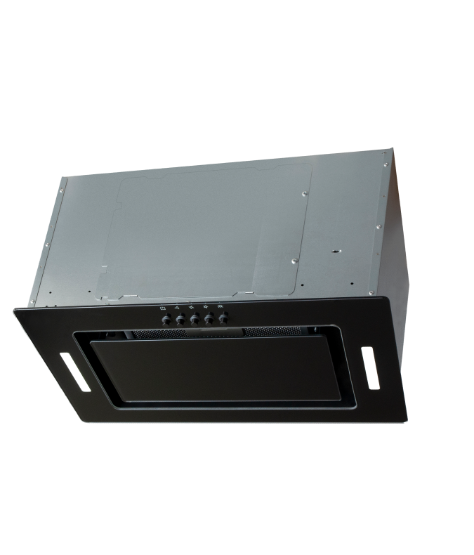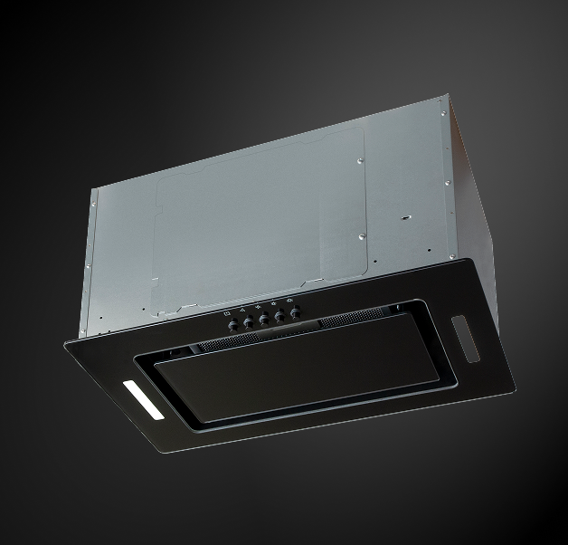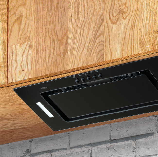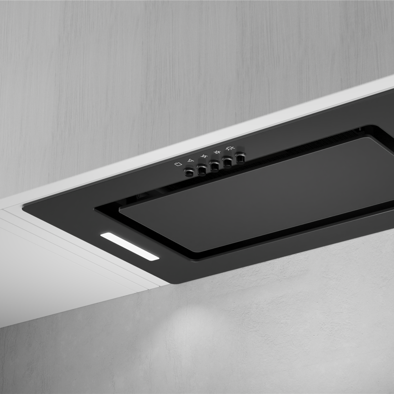 Elegancki i nowoczesny wygląd okapu, oparty na głębokiej czerni szkła i dopasowanych kolorystycznie przyciskach, tworzy uniwersalną stylistykę, która seamless integruje się z każdym stylem kuchennym.