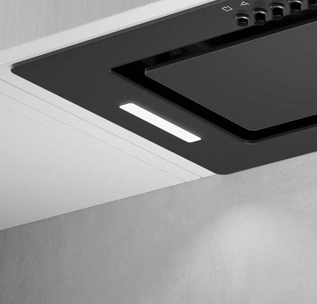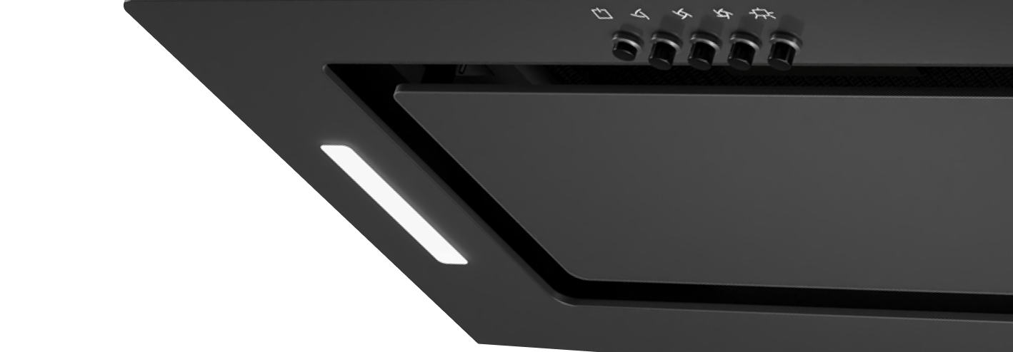 Sterowanie mechaniczne czarnymi przyciskami z iałym podświetleniem to eleganckie i nowoczesne rozwiązanie, które ułatwia obsługę okapu, zapewniając intuicyjne kontrolowanie jego funkcji nawet w ciemności. Intensywne podświetlenie dodaje stylowego akcentu, jednocześnie zwiększając widoczność panelu sterowania.