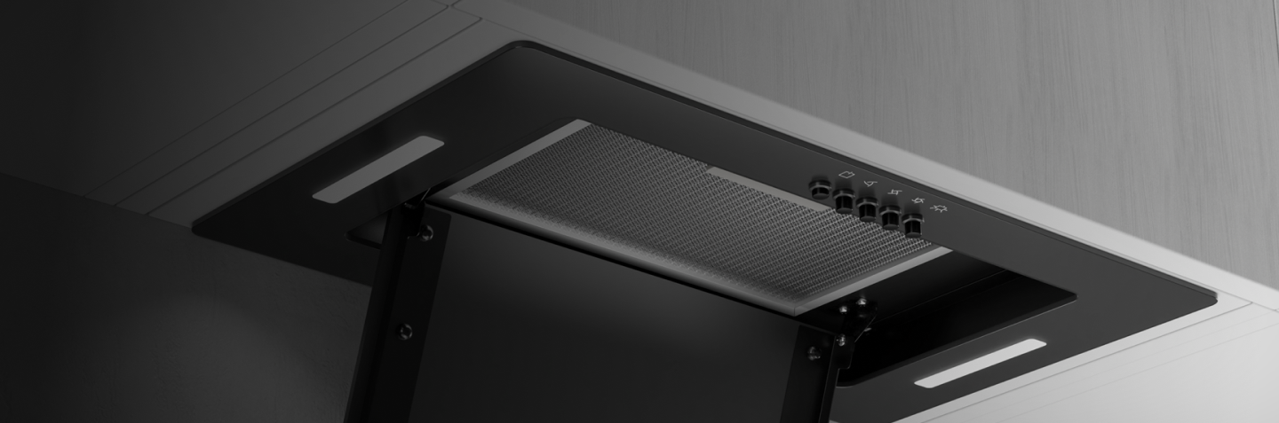 Mechaniczne sterowanie za pomocą czarnych, ergonomicznych przycisków umożliwia precyzyjne regulowanie wszystkimi funkcjami okapu. To intuicyjne rozwiązanie łączy niezawodność z prostotą obsługi, gwarantując bezproblemowe użytkowanie przez lata.