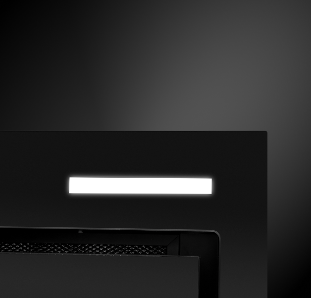 Elegancki i nowoczesny wygląd okapu, zdominowany przez głęboką czerń szklanego frontu, idealnie komponuje się z każdym stylem kuchennym – od minimalistycznych wnętrz po industrialne aranżacje.