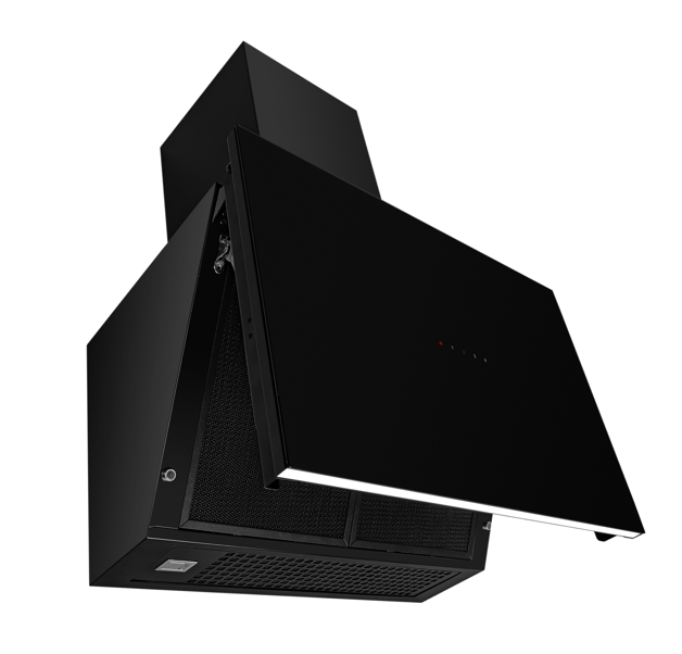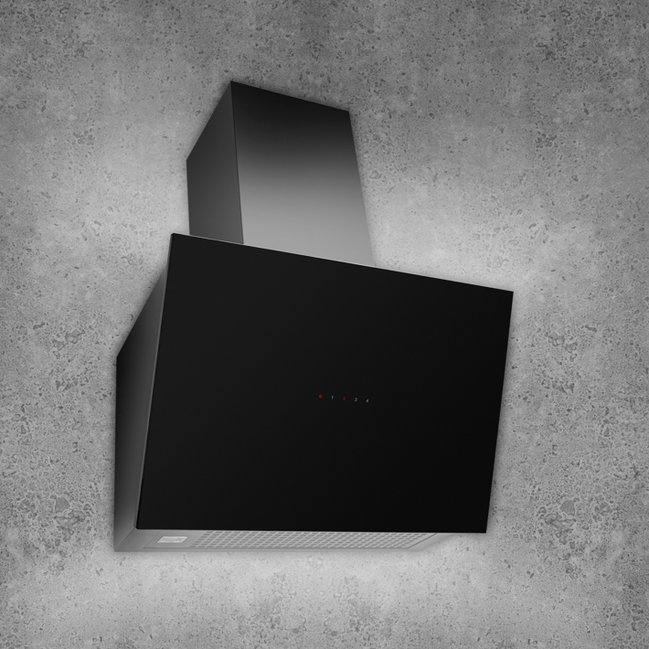 Elegancki i nowoczesny wygląd okapu, zdominowany przez głęboką czerń szklanego frontu, idealnie komponuje się z każdym stylem kuchennym – od minimalistycznych wnętrz po industrialne aranżacje.
