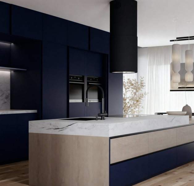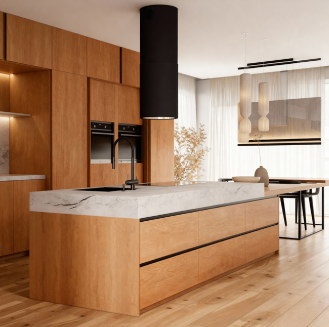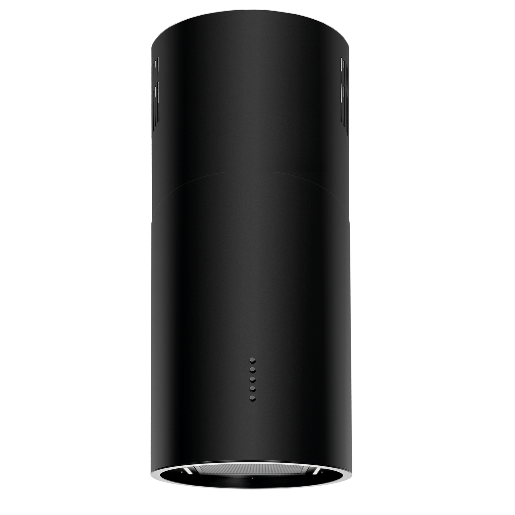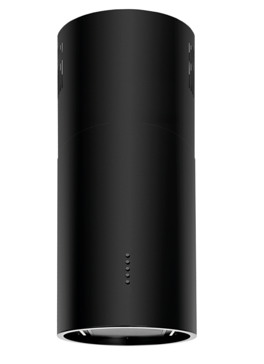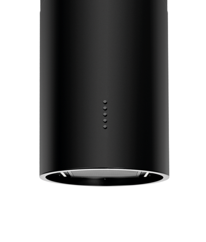 Elegancki i nowoczesny wygląd okapu, zdominowany przez głęboką czerń szklanego frontu i cylindryczny kształt idealnie komponuje się z każdym stylem kuchennym – od minimalistycznych wnętrz po industrialne aranżacje.