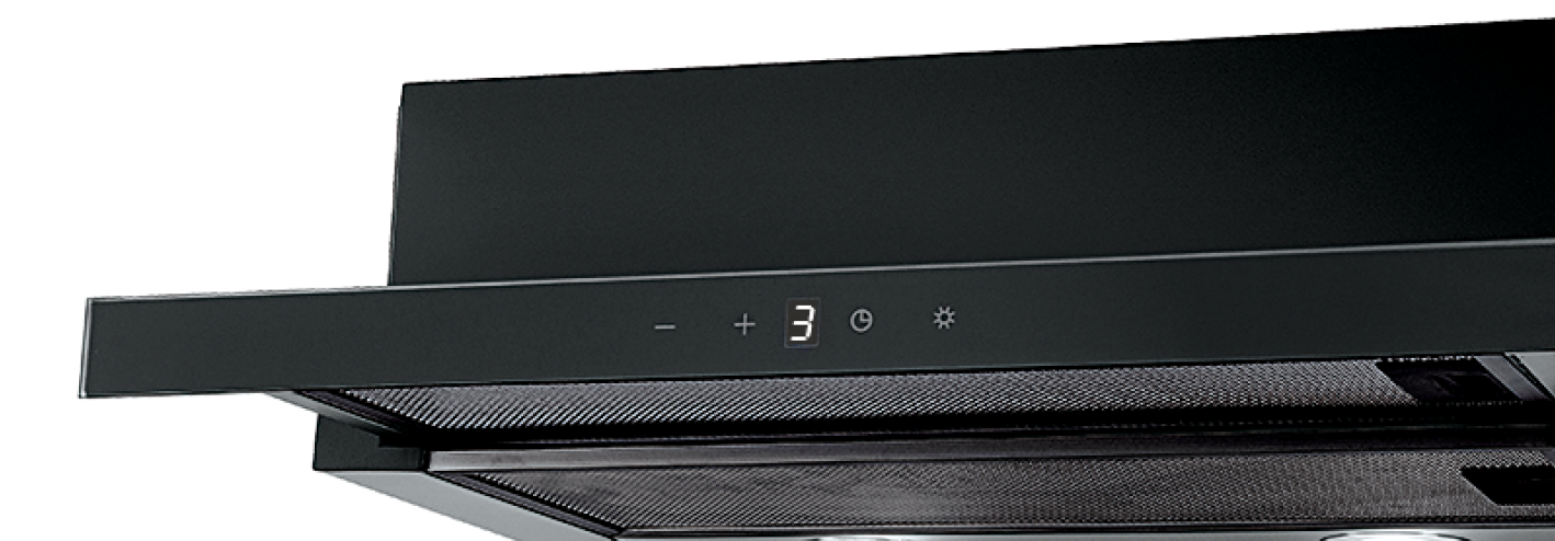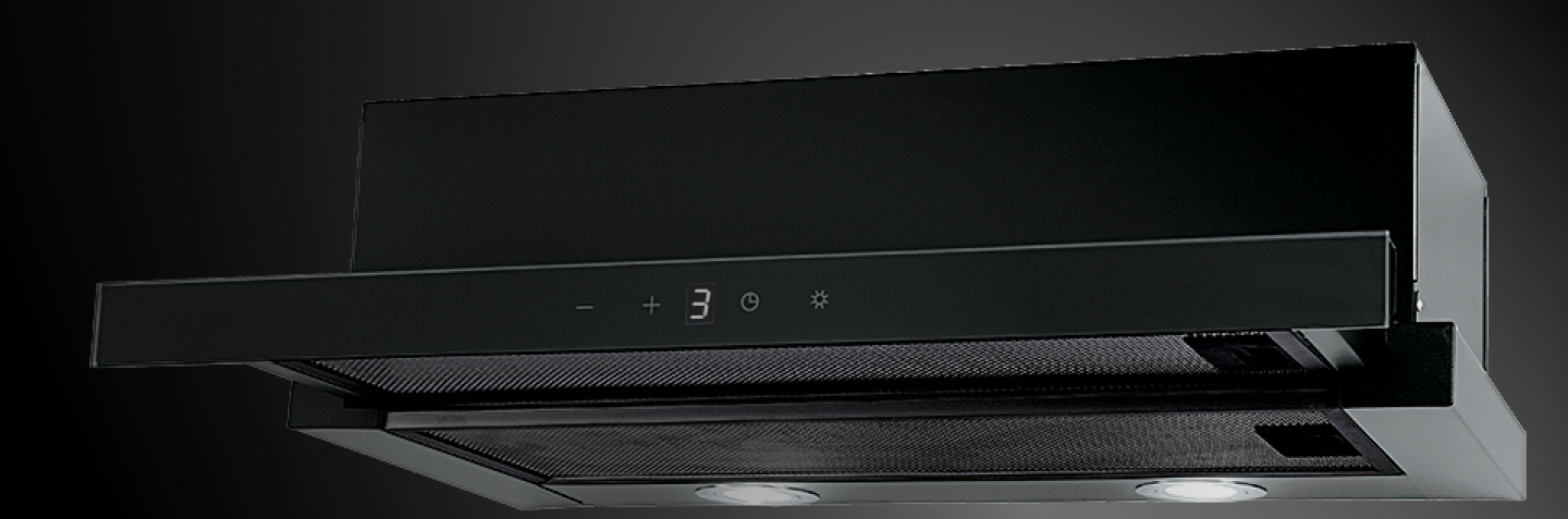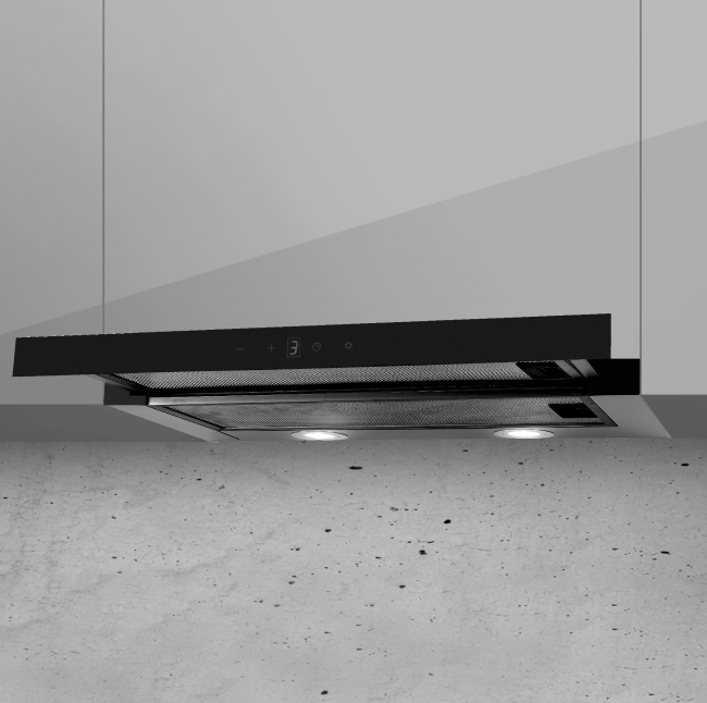Elegancki i nowoczesny wygląd okapu, zdominowany przez głęboką czerń szklanego frontu, idealnie komponuje się z każdym stylem kuchennym – od minimalistycznych wnętrz po industrialne aranżacje.